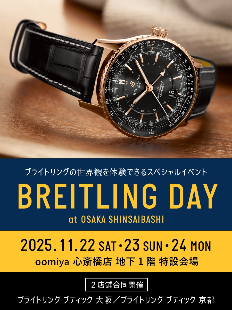 この度、「ブライトリング ブティック 大阪」、「ブライトリング ブティック 京都」2店舗合同の『ブライトリング デイ』をoomiya 心斎橋店 地下1階 特設会場にて、2025年11月22(土)・23日(日)・24(月)の3日間限定で開催いたします。